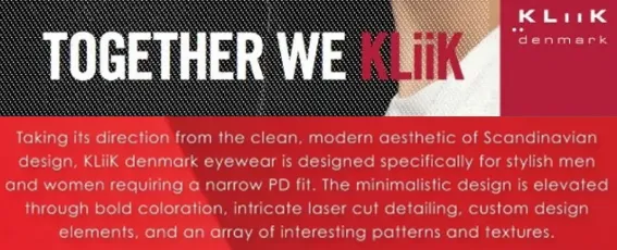 Kliik frames strategically accentuate the beauty of your eyes while complementing your facial structure. Kliik’s designs are featured in glasses produced by Westgroupe - an international company dedicated to innovative eyewear designs. Westgroupe’s mission includes identifying companies that offer diverse choices to help shape the future of eyewear in your area.